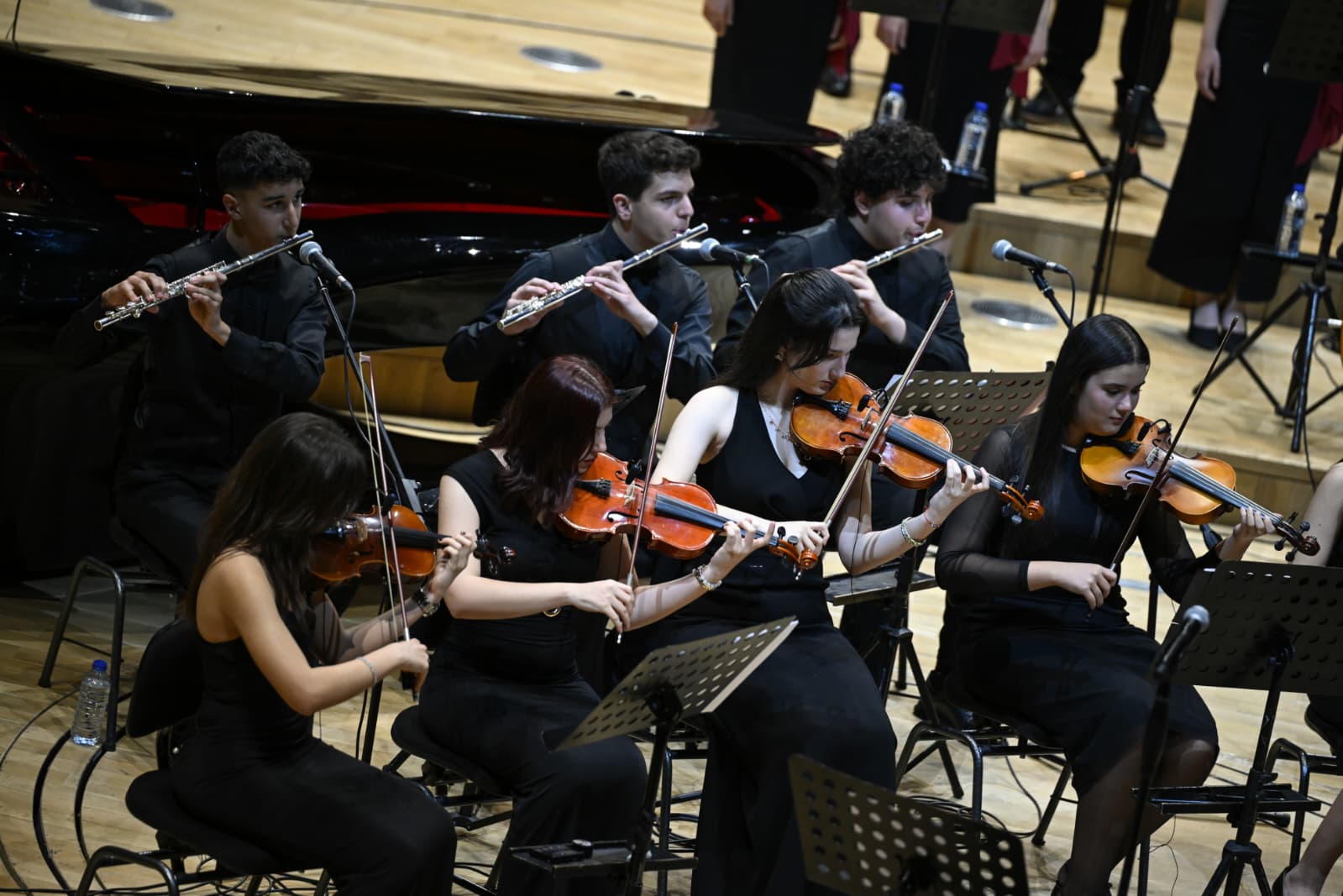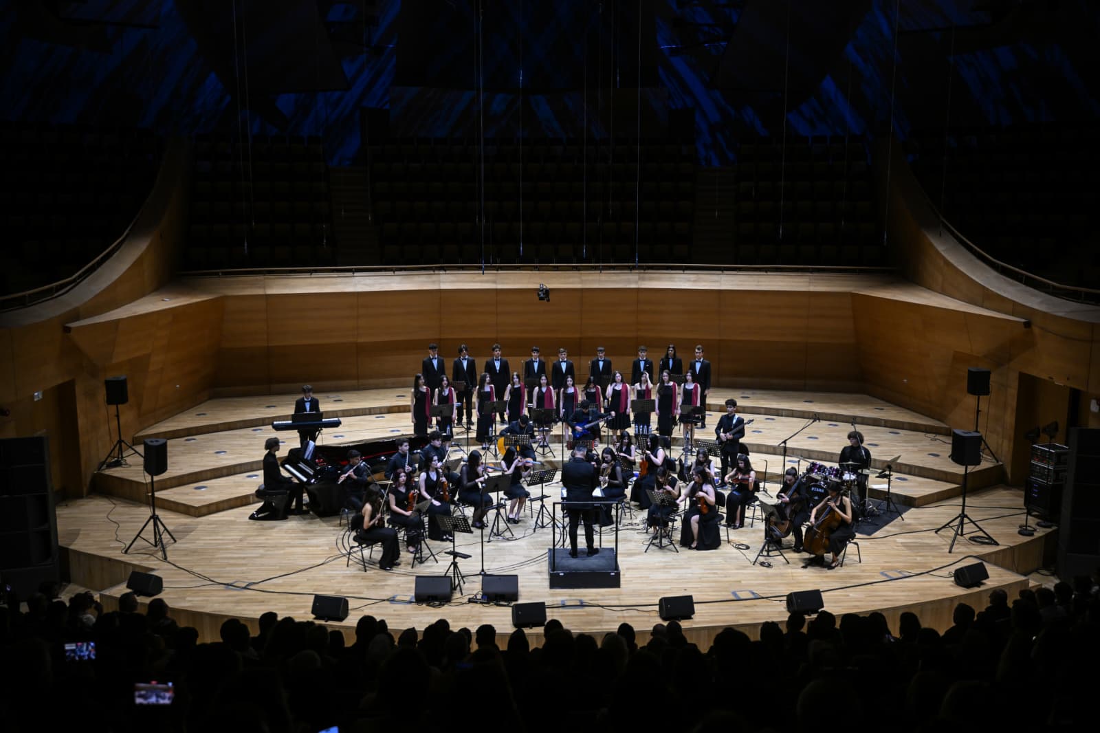 45 kişilik öğrenci grubundan oluşan koro ve orkestra, enstrümanları zarar görmesine rağmen hazırlıklarını tamamlayarak başkentte dinleyicilerle buluştu.